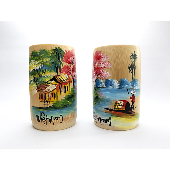 Cốc tre vẽ tay Việt Nam (Màu bất kỳ)